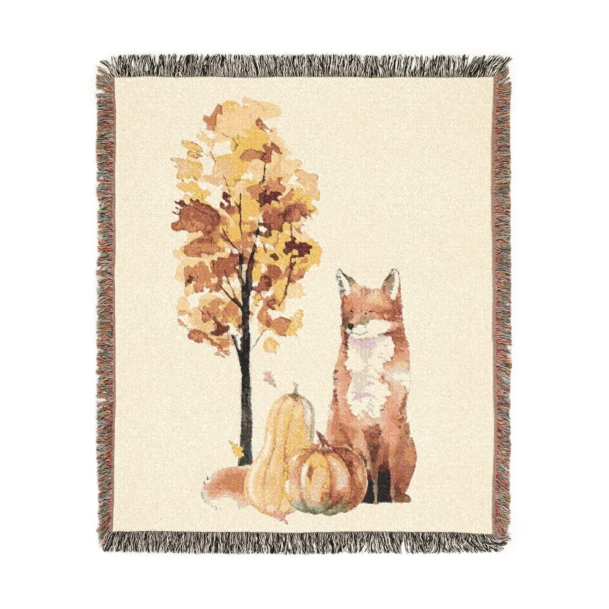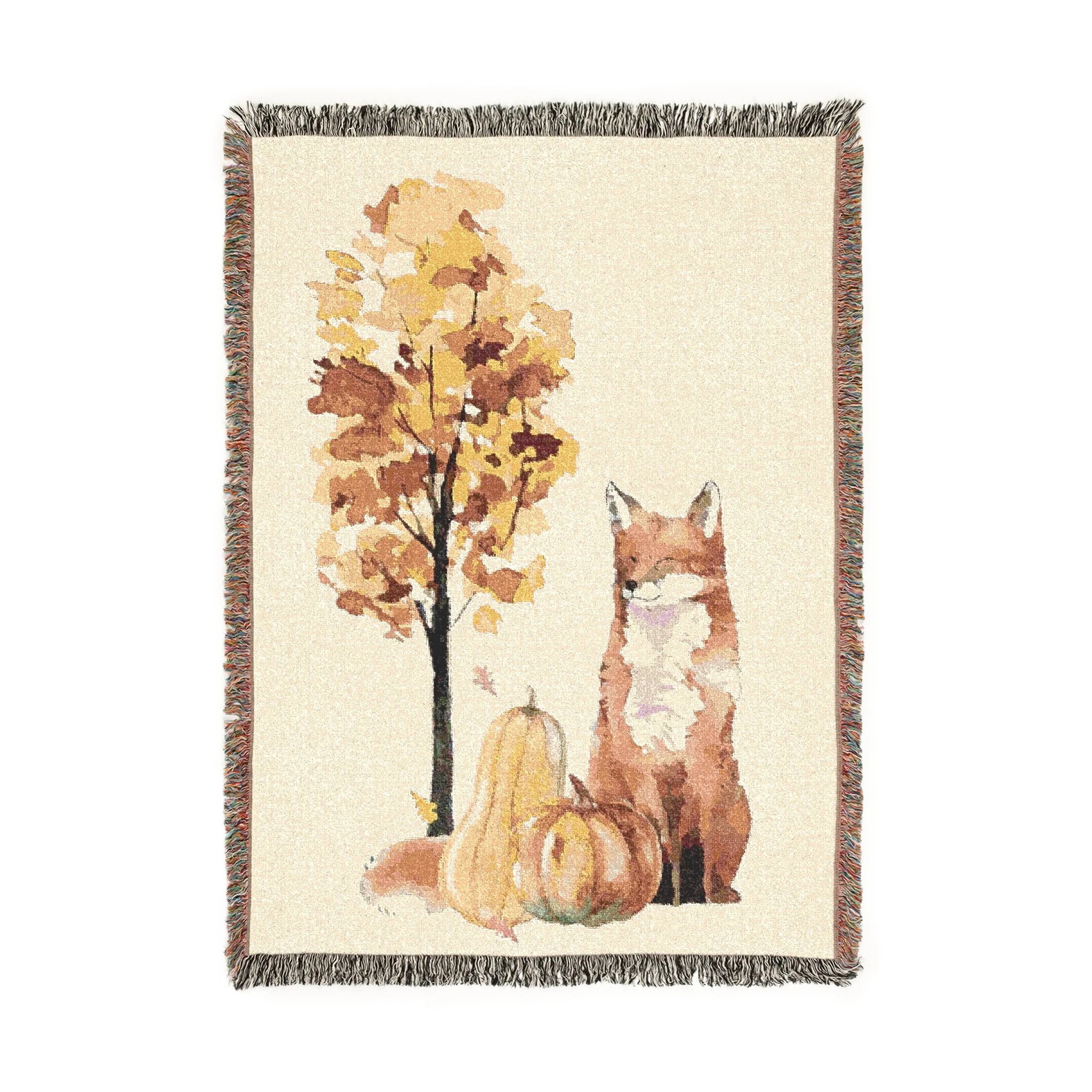 Red Fox Fall Blanket~ Cotton Woven Blanket